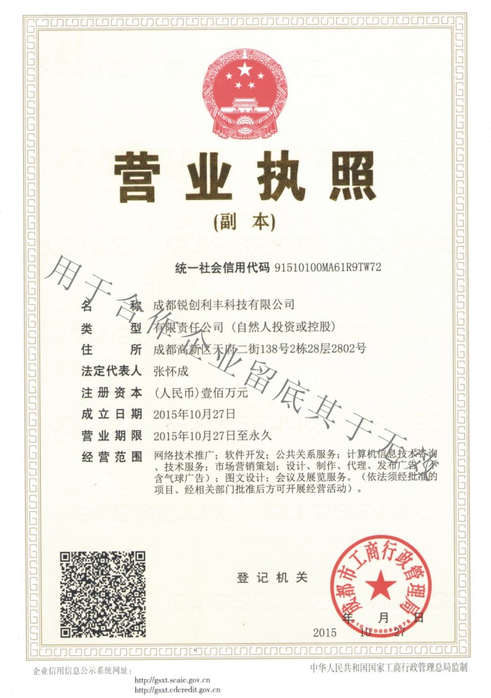 成都锐创利丰科技有限公司 三证合一